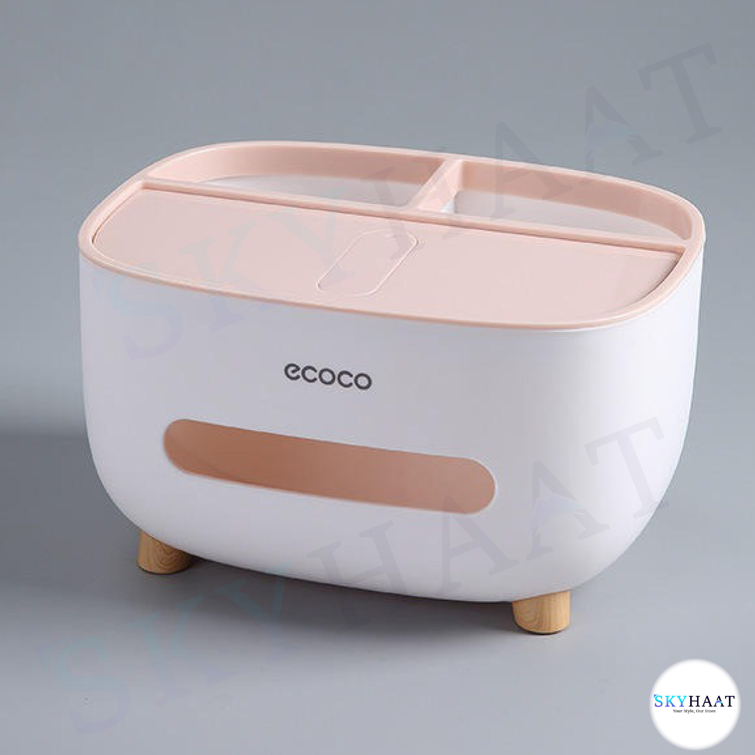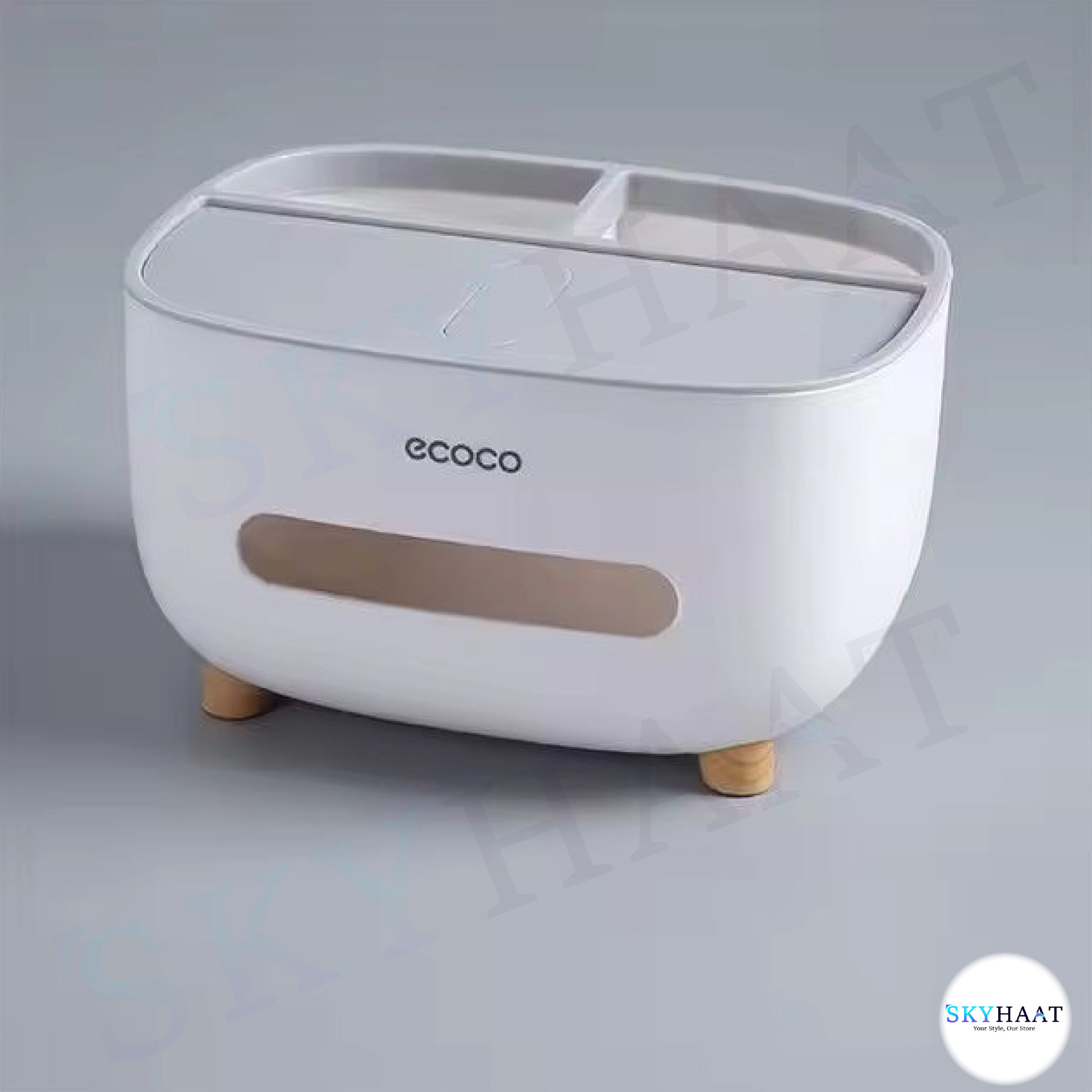 ECOCO Desktop Tissue Box Organizer – Multi-Purpose Storage Holder for Home & Office